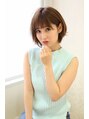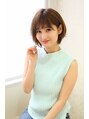 耳掛けした時の前髪サイドをラウンドにきる事で小顔効果がバツグン!ミントのトップスとベージュカラーの相性は抜群♪