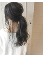 黒髪でもブルージュを入れる事で透明感とオシャレさがアップします。コテで巻く事で大人っぽく華やかに☆