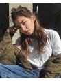ラフな質感のハーフアップアレンジ。大きめに巻いてざっくりとお団子に。風になびくような軽い前髪がポイント!
