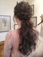 ゆるくツイストを入れた人気のローポニースタイルです♪柔らかさを出しつつ華やかに抜け感のあるウェーブスタイルです☆