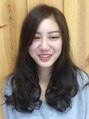 前髪のない、重めのローレイヤーロングスタイルです。重くなり過ぎないよう、全体に間引きカットをしています。カラーは柔らかい印象のマットグレージュで軽やかさをだしました。コテやパーマでふんわり仕上げます。ロングの方にオススメです☆