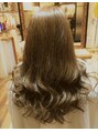 ワンカラーでブリーチなしのアッシュベージュ。赤味をおさえたカラーリングで透明感をだしました。グラデーションカラーやハイライトで遊びをだすと、より立体的に☆