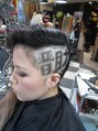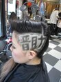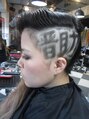 バリカンアートで銀魂の高杉晋作の晋の文字。助けるの助の文字のオーダーでございました。サイド以外はグラデのロングスタイルのお客様なので、おろすと隠れます。