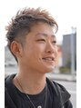 サイドと襟足は、メリハリをつける為、刈り上げて2ブロックスタイルにしてトップに長さを残し束感を出しました。前髪は男らしく立ち上げるとかっこいいです。
