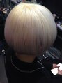 ブリーチ3回にムラサキシャンプーで黄色味を消して白っぽくしています♪
