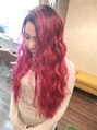 塩基性カラーでピンクグラデーション春らしく華やかに♪ウェーブ仕上げです★