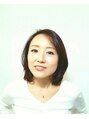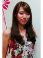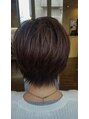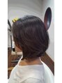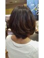 手間のかからぬようパーマをあててハンドブローで!長めの前下がりスタイルです!