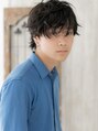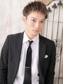 ビジネスシーンにピッタリの好感度ショート。サイドはさりげないツーブロックで耳上までスッキリさせて清潔感を。トップは七三でラフに分け、アップバングでクールなデキる男を演出。スーツによく似合います。オフの日は前髪を自然に流してソフトな雰囲気に。