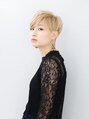 クールな女性を演出するショートスタイル。サイドは短く刈り上げトップは動きが出るように軽くカットしてあります。前髪は目にかかる長さを残しビターな印象に。カラーは2度ブリーチ後ベージュをのせてブロンドヘアーに遊び心のあるショートスタイルです。