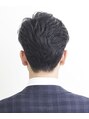厚めに刈り上げたツーブロックで、癖毛を抑えながらタイトなフォルムを構築。前髪は上げずに流し、分け目もルーズに。緩めのカールをつけることでエアリーな雰囲気も伴います。癖毛で広がりやすい人におすすめ。【銀座】<理容室>