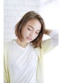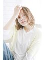 セニングで全体を間引いて軽さを出しています。セットも楽チンで朝時間をかけたくないという方にもオススメ。!カラーリングは9レベルのヌーディーベージュで、赤味を抑え透明感を強調しています。