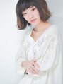 顎ラインで重ためにカットし、トップに動きが出るようレイヤーが入っています。パーマは大きめのカールで抜け感を演出!