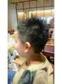 サイドとバックを刈り上げて、トップを短めに残したソフモヒスタイルです。汗をたくさんかくお子様にオススメです♪