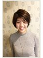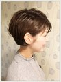 襟足をスッキリさせたかったので、後ろはツーセクションにしました。髪が直毛で、硬い方なのでゆるくパーマをかけてやわらかさを出しました。カラーは、ブルーをまぜてアッシュとモノトーンをくすませた、『ブルージュ』カラーに仕上げました*
