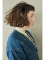 外国人風のくせ毛っぽい質感のボブ。眉上前髪にもパーマをかけて抜け感を。カラーはグレージュカラーで透け感と柔らかさを出しました。アレンジもしやすいので楽しめます。