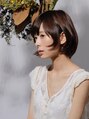 シンメトリーなマッシュショートボブスタイルを顔まわりは外ハネと内巻きにMIXすることによって、彼女のミステリアスなお洒落感を際立たせました。また、耳にかけるだけで雰囲気もガラッと変わる背伸びしないショートスタイルへチェンジできます。