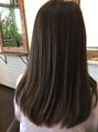 鎖骨下10cmのローレイヤー。アウトラインは少し重さを残し、顔まわりと表面にレイヤーを入れ軽さを入れてバランスをとる。カラーは立体感が出るよう表面を中心にハイライトを入れる。