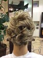 編み込みスタイルで、トップは、ホットカーラーで巻いて、グロスワックスを付けてくずしています。