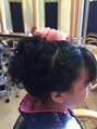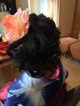 アイロンでしっかり目にカールを作り、左目にポニーテールを作って顔周りの動きが出ない所を編み込み。