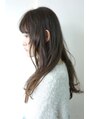 コールドパーマで動きをつけた無造作なミディアムレングスのウェーブスタイルです。すべておなじ方向に巻いてパーマをかけているので、ドライヤーでねじりながら乾かしてスタイリングしても良し、ムースをつけて放置しておいても良いスタイルとなっています