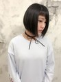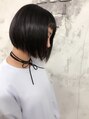 しっかり後ろを切り込んだ前下がりボブ。前髪もアシンメトリーにして個性を出しました。