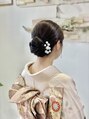 カチューシャを使ったアップをオーダーいただきましたので、トップ、サイドに波ウエーブを作り、ゆるく少しずつまとめて、バックにモコモコカールでエレガントに仕上げてみました