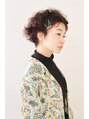 強めのウェーブに柔らかなピンクベージュをオン。襟足はしっかりフィット感を出して女性らしく。