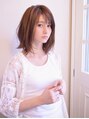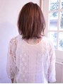 トレンドの外ハネボブをパーマをかけずに再現しました★あえて毛先が動きやすいようにレイヤーを入れ、肩ではねさせているナチュラルボブスタイルです。