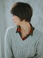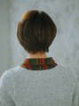 ショートボブにカットしているので襟足はタイトにすっきりと収めつつ、サイドには少し長さを残し気味にすることでボーイッシュすぎない女性的なシルエットにしてあります。前髪は流しバングやショートバングでも似合わせ可能です!
