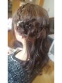 可愛らしい印象になるように編み込みを作り残りをお花風にしました(*^ω^*)