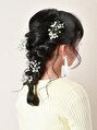 遅れ毛をたっぷり残してリラックス感を出しました。編み目も崩し気味に、頑張りすぎず、しっかり可愛らしいセットです。ブライダルでもとても人気なスタイルです。