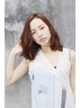 ミディアムのレングスに顔周りを顎下からレイヤーにつなげてシンプルにブラウンベースに深めのアッシュをオン