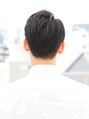 爽やかさと男らしさをミックスしたトラッドスタイル。サイドは2ブロックにする事でデザイン性&メリハリをプラス。分け目はぴっちり分けますがあえて空気感を少し出しオールバックに流す事で強い印象になり過ぎない様にしています。