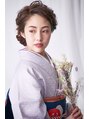 ふんわりとまとめた上品アップスタイル。落ち着いて見え過ぎないように、やや抜け感のあるカールをまとめ上げることで表情も柔らかに、やさしい大人女性に似合うスタイルに仕上げました。