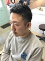サイドおでこのラインに合わせて後頭部辺りまで3mmで刈り上げブロックを入れて、トップは上げられる長さは残しサイドの長さに合わせて似合わせ。