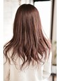 ピンク色とアッシュ色をミックスした透明感と柔らかい質感が◎透明感がでるように少し軽めの前上りロング