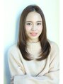 ストレートのセミロングスタイルです。ブラシを使わずとも乾かせばサラサラにまとまるスタイルです。光沢感を出すためにまっベージュカラーでどの位置から見ても綺麗に髪を見せたい方にオススメです。
