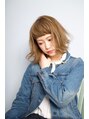ボブと短い前髪がポイントのスタイルです!カラーはダブルカラーで明るめのグレージュに。
