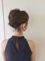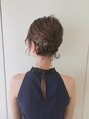 ショートボブスタイルのヘアアレンジ。カールさせたおくれ毛がポイント☆