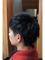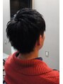 人気のツーブロックショートスタイル。サイドは低く刈り上げて、束感を出して全体無造作にセット。ナチュラルな仕上がりです♪アップバング。