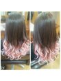 地毛と全く違うピンク色のエクステをつけて、グラデーション風に仕上げました(*^▽^*)グラデーションの場合は巻いた方が馴染みがいいです☆