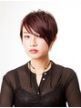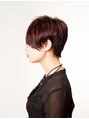 全体的にレイヤーが入ってることで、軽い感じで動きのあるショート。長めの前髪もセクシーかつクールな印象に。人と差をつけたい人にはぴったりです。カラーも人気のバーガンディカラー!