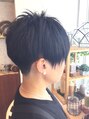 文句無しのかっこいいショート!かっこいいショートスタイルを求めている方はぜひぜひ、チャレンジしてみてください☆特徴あるカットですが、ブルーに透けるブラックピカラカラーが、スタイルを際立てせています。カラーNGの方もオッケーなカラーですね☆