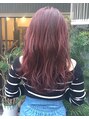 ブリーチ無しのルビーピンク色☆ワンレンベースカラー少しグラデーションをいれて春夏スタイルに☆
