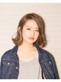 トレンドを取り入れたかき上げ外ハネボブ。カラーはアビスカラーをベースにメッシュを入れて動きのあるスタイルに!