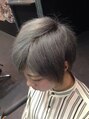 ショートのブリーチONシルバーです♪髪の量が多いため、内側を刈り上げています。