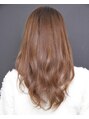 全体的にレイヤーを入れ動きが出るスタイルです。トップにはあまりレイヤーを入れすぎないのとボルドーカラーでの艶感を出しています。毛先を遊ばせラフな感じを意識しました。前髪にややカールを入れることできつすぎない表情を出していきました。