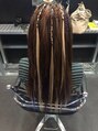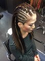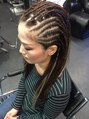 トップとバックにはポイントでブレイズを、サイドはコーンロウとなっています。ブレイズ部分でアレンジできるので、いろいろ楽しめるスタイルです☆