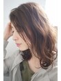 ルーズなカールにウェットな質感にトップにだけレイヤーを入れ髪に動きと、緩やかなくびれを付けています。カラーはアッシュベージュで髪に透明感と抜け感をプラスしました。