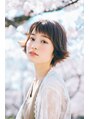 グラデーションボブにフロントをマユ上まで切り込んだカジュアルな外ハネスタイル。